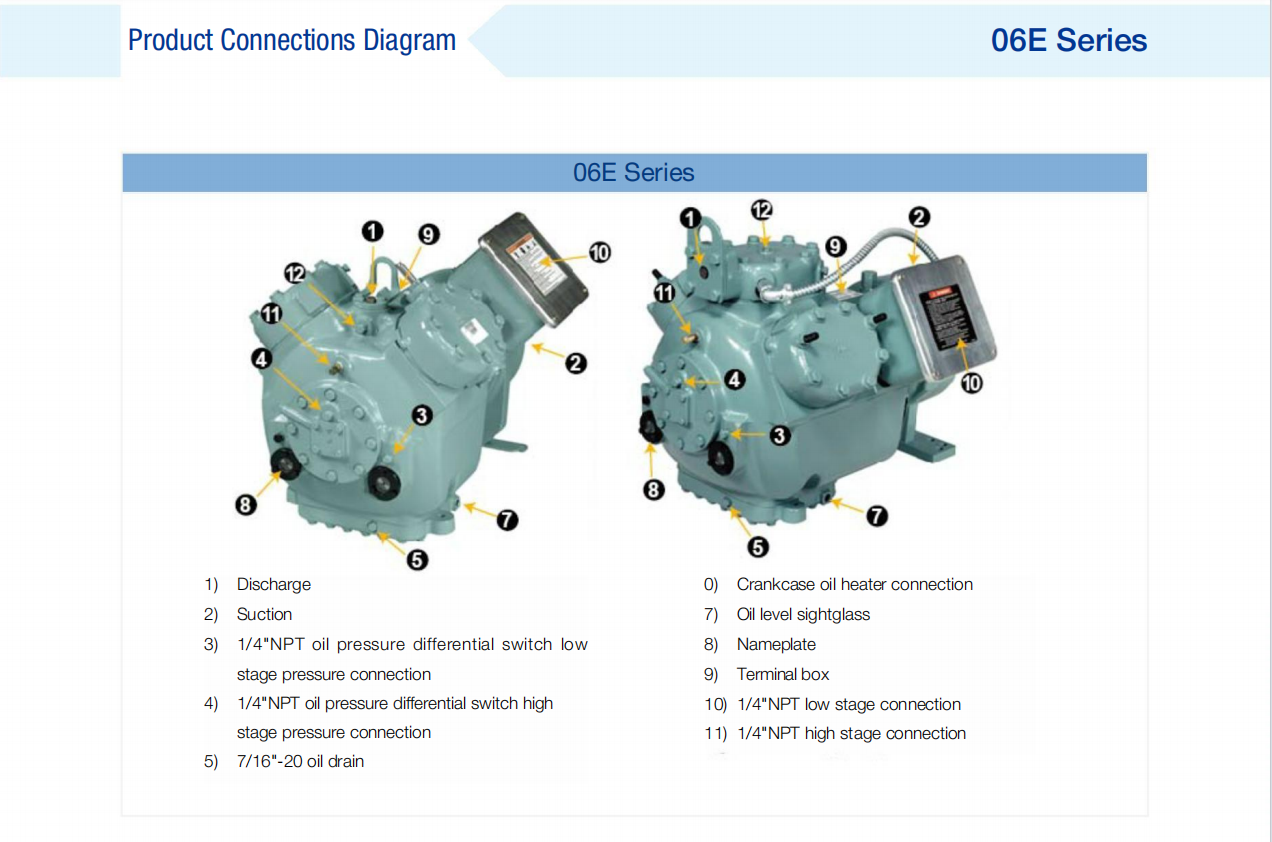 25HP 06E Carlyle 06EA565600 Semi-hermetic Compressor with 1-3/8 in Discharge Line Images |